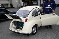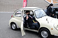 最先端を行く2台の車の横には、レトロな雰囲気をまとった小さな車両が停められていました。このスバル360は、1960年代、まだ日本が貧しかったころ、何とか庶民に手が届く価格帯で販売された、「日本初の大衆車」と呼ばれる車です。限られた空間で居住性を確保する様々な工夫が施され、航空機の技術を応用した超軽量構造を採用して非力なパワーを克服するなど、涙ぐましい努力が満載の車です。「てんとう虫」と呼ばれるかわいらしいフォルムも人気の秘密の一つです。