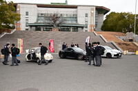 本日放課後、至真殿大階段下に3台の車両が展示されました。これは午前中に行われた、1年生対象の進路ガイダンスにも参加していただいた、トヨタ自動車大学校とNATS(NIHON AUTOMOBILE COLLEGE) 日本自動車大学校 袖ケ浦校との共同の催しです。