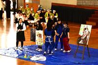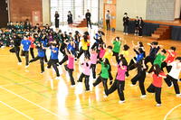 会場の前方に1年生、後方に2・3年生が整列。生徒会指導部宍田先生の指示で、新入生と上級生が体育館の中央で向かい合う態勢で整列しました。