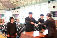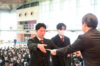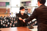 明日は高校生活の最後の一日です。多くの保護者の方々が、みなさんの門出を見守るために式に参列して下さいます。呼名に際しては大きな声で返事をして、保護者の方々への感謝の気持ちを伝えてください。そして最後の斉唱となる校歌を大きな声で歌いましょう」と式辞を述べました。