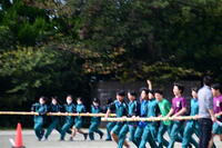 本日も特進ハウスと3学年それぞれのハウスが、決められた場所で練習を展開しました。某学年の大玉競争の練習では、大玉がこぼれ落ちない態勢を組み、「バウンド最小限に抑え、頭上を移動させるのがベスト」と細部にわたる作戦が練られていました。その徹底ぶりに、勝負にかけるガチな意気込みが伝わってきました。メイングランドでは、シートの上にボールを載せた「謎の競技」に取り組む生徒たちが…。各学年各ハウスが、銘々の持ち味を活かした練習に取り組み、本番に備えました。