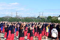 練習時間を終えると、全生徒が一堂に会し、メイングランドで整列場所の確認、準備体操の練習を行いました。