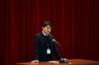 前生徒会会長沖琉雅くんが、これまでの活動を振り返り「きょうで、第21代生徒会は任期を終えることになります。2年間の活動期間でしたが、初めは何もわからないところから、先輩方に多くのことを教えてもらい、今では自分が次の世代に伝える立場になりました。この1年間生徒会長として生徒会を運営していくにあたって必要不可欠だったのは役員の仲間たちの存在です。どの仕事でも私1人では力が及ばず、仲間の手を借り、時には先生方の力を借りることで、多くの仕事を成し遂げることができました。中でも1番記憶に残っているのが、生徒会行事の球技大会です。学校初の行事であったため、ゼロから計画、運営を行わなければならず、忙しい毎日でした。ですが、仲間や多くの先生方と連携をとり、一つの行事として学校を盛り上げることができたと思います。長いようであっという間の2年間が終わり、次は新しい生徒会が学校を盛り上げてくれるはずです。さらに良い生徒会活動を期待しています。最後に、私たち生徒会を支えてくれた全校生徒の皆さん、先生方、本当にありがとうございました」と、誠実な人柄が伝わる、丁寧な挨拶をしてくれました。