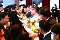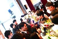 ステージ上では最後に花束の贈呈が行われました。心のこもった花束に、各クラス担任の顔からは笑みがこぼれ、和やかな謝恩式となりました。