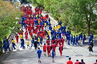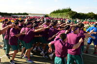 部活動対抗リレーは、「演芸部門」と真剣勝負の「本気部門」の二本立てでした。「芸能部門」では各部が趣向を凝らした出で立ちで参加。着順にはこだわらず、如何にウケるかが勝負のレースでした。「本気部門」では、陸上部が圧巻の優勝。見事な走りっぷりでした。