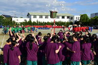 続いて学校長は、参観に訪れた多くの保護者に謝辞を述べた後、生徒たちへ向かい「素晴らしい天気に恵まれました。みなさんが全力で競技をする姿を楽しみにしています。開校以来一度も途切れることなく、今年23回目の体育祭を迎えることができました。最近は縮小されたパターンでの体育祭が増えているそうですが、我が校伝統の体育祭は、2日間の開催です。みなさんの思い出に残る体育祭になればと思っています。どの学年、どのハウスも是非本気で競技に臨み優勝を目指してください。ただし、ルールはしっかり守りフェアープレーの精神を忘れず闘ってください。そして文化祭と同様、楽しむ気持ちを忘れず笑顔の体育祭にしてほしいと思います。2日間の体育祭の成功を祈っています」と激励の言葉を伝えました。