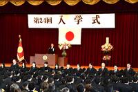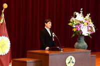 学校長は新入生と保護者に向かい、式辞を披露いたしました。「社会の良心になれ」「困難にくじけない逞しい人間になれ」「大いなる真実の自己に生きよ」と、開学以来80年、君津学園の歴史の中で脈々と受け継がれてきた本校の教育の原点、「真心教育」が目指す人物像を紹介し、新入生が「真心の人」として成長してくれることを願いました。そして「本気で挑み、悩み、乗り越えた経験こそが、未来を切り拓く力となる。失敗を恐れず一歩を踏み出す勇気を持つ」よう、力強く鼓舞しました。