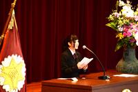 新入生を代表して、竹本景哉さんが「誓いの言葉」を述べました。「私たちを支えてくださる多くの方々の期待に応えることができるように、努力する覚悟でございます。どうぞ温かく見守って下さい」と、高校生活の門出に立ち、新たに抱いた決意を表明しました。