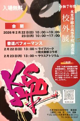 イオンモール木更津で「令和7年度 木更津総合高等学校 書道部 校外展」を開催いたします。作品展示にとどまらず、屋外会場で書道パフォーマンスを繰り広げるなど、部員僅か3名とは思えぬパワーに溢れた展示会となります。