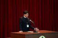 吹奏楽部の演奏による校歌斉唱に続き、終業式が行われました。今年、全生徒が集う最後の機会となりました。至真殿に集まった生徒たちは、学校長のことばに耳を傾けました。