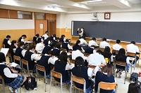 会場となったのは、青雲館、至誠館と3学年ハウスの各教室でした。5、6校時、2コマの授業時間帯に、生徒は各自が希望するガイダンス、講座を2つ選んで受講。それぞれの会場で配られた資料に目を通し、メモをとりながら熱心に説明に聴き入る様子が目立ちました。