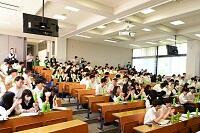 和太鼓部最後の演目では、両部がコラボでのパフォーマンスを行いました。演奏曲は、「櫻宴華(オウエンカ)」。今夏和太鼓部は香川県で開催される全国大会に出場が決定しており、その大会に向けて編曲が施された、スペシャルバージョンの披露となりました。和太鼓の迫力の演奏と躍動感のある書道パフォーマンスは見事にマッチし、会場からは大きな拍手と喝采を送っていただきました。フィナーレを飾るにふさわしい、“和”の共演となりました。