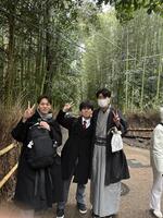 京都滞在のB班は、もちろん市内散策と神社仏閣巡りを楽しむクラスが大半を占めます。人気スポットの渡月橋や伏見稲荷で映える記念写真を撮りまくる生徒もいれば、座禅や陶芸、抹茶や八つ橋作りなど、体験型アクティビティで古都を満喫する生徒もいました。その他にも太秦映画村、保津川下り、水族館などを楽しむクラスもありました。