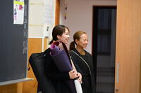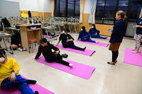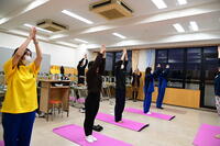 インストラクターの赤間様の指導で、生徒たちはヨガにチャレンジ。呼吸の仕方、身体の細部に向ける意識、体位の保ち方などが、常に優しい、ゆったりとした口調で伝えられたおかげで、生徒たちはリラックスしながらヨガに取り組むことができました。およそ50分のレッスンを終え、最後は発祥の地インドで感謝を伝える、「ナマステ」で挨拶。生徒たちはすっきりとした表情を浮かべていました。