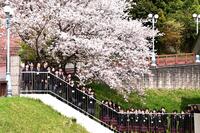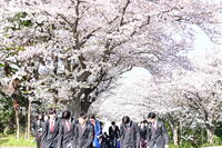 大勢の生徒が桜のトンネルくぐって、至真殿に続く坂を上ってきました。