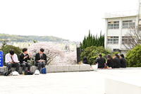 新入生が入学準備のため、本日登校しました。週末の風雨を耐えた満開の桜が、ピカピカの1年生を出迎えました。