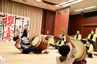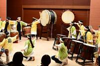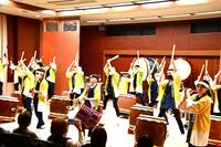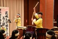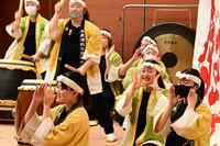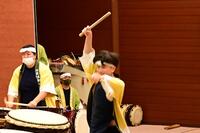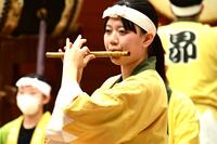 第1部にお届けした曲は、「潮合い」「祭り」「櫻宴華(おうえんか)」「秩父屋台囃子(ちちぶやたいばやし)」の4曲。第2部には、「奏音(かなた)」「楽(らく)」「睦(むつみ)」の3曲を加え、全7曲を力一杯演奏しました。MCの二人から曲の背景やイメージが紹介されると、静かな笛の音、勇壮な太鼓、賑やかにリズムを刻む鉦(カネ)や竹筒など、様々な楽器を駆使し、その曲のタイトルにふさわしい曲調が奏でられました。