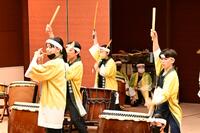 3曲目の「櫻宴歌(おうえんか)」には歌唱パートがあり両部の部員が全員で歌い出すと、観客のみなさまからは温かい手拍子が送られ、高らかな大合唱となりました。また、和太鼓部顧問の樋口先生から、「書道部とのコラボは、この曲を切っ掛けに始まった」と両部交流の経緯を紹介する場面がありました。