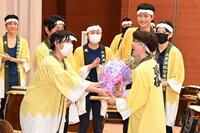 ところが、引退セレモニーはこれで終わらず、「悔いのない部活人生でした」と3年間を振り返る並河さんが、「でも、まだやり足りないですよね?」と佐藤くんへ言葉を投げかけました。なんと!3年生の二人が昨日完成させたばかりの新曲、「輪」が披露され、本当のサプライズとなりました。佐藤くんが太鼓で軽快なリズムを刻み、並河さんが伸びやかに笛を奏でる素晴らしい曲でした。